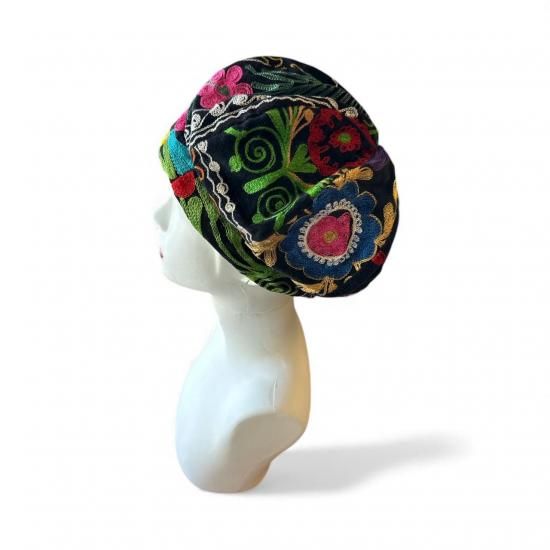 スザニ刺繍のベルベット帽子|一点物 ハンドメイド カラフルボヘミアンハット suzanihat 001