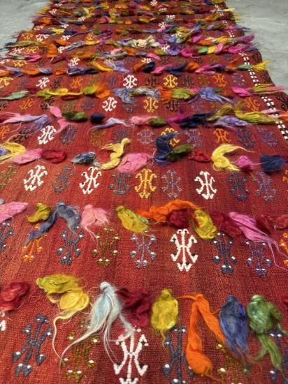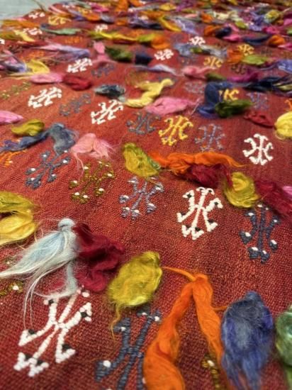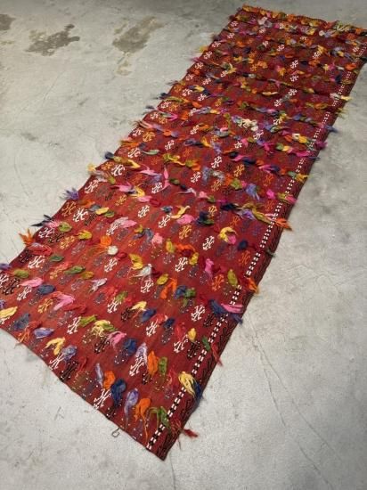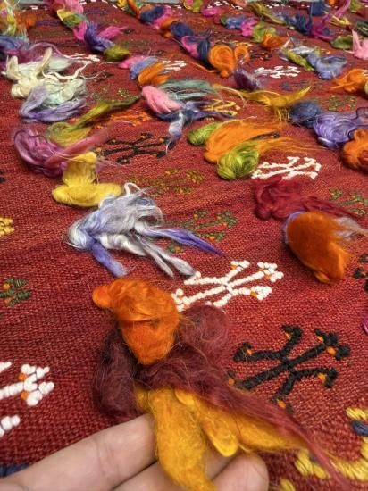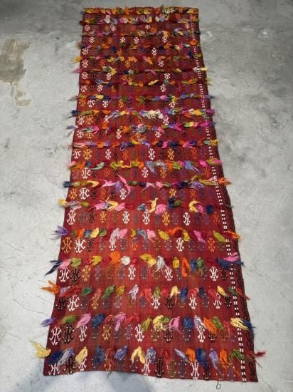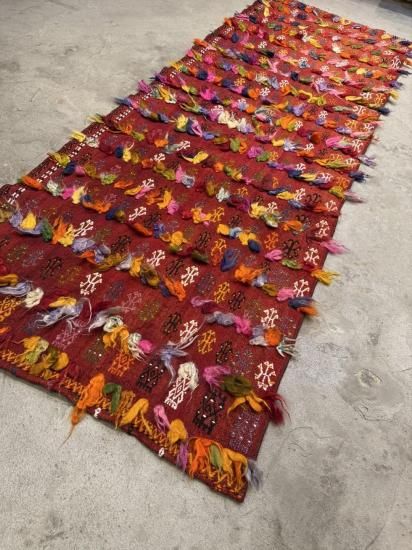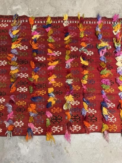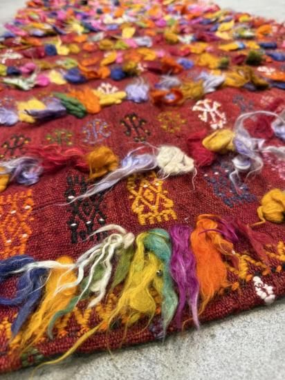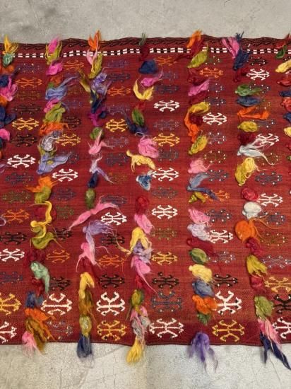 ・技法:手織りキリム(平織り)+ ウール房(テュル技法)