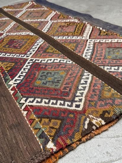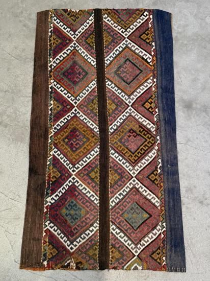 【80年物】マラティア産 ヴィンテージ キリム クッション/ラグ 110×61cm(リバーシブル)