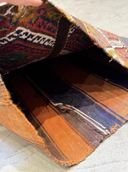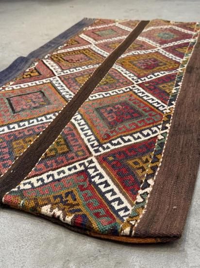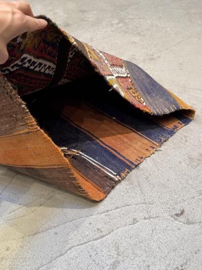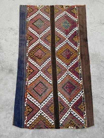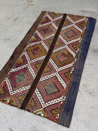トルコ・マラティア地方で織られた 約80年前のヴィンテージ・キリムを使用した、非常に希少なクッション/ラグです。もともとは遊牧民が使用していた**キリム製の袋(チェヴァル)**で、現在では入手が難しい伝統的な手織り生地です。