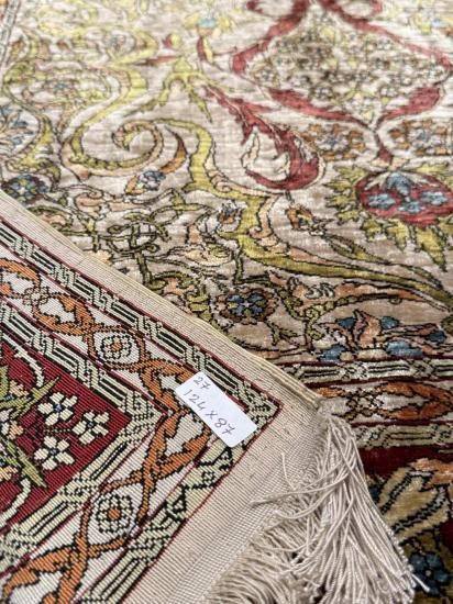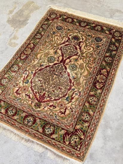 【100年物】ヘレケ産シルク絨毯(124×87cm)ヴィンテージ手織りラグ