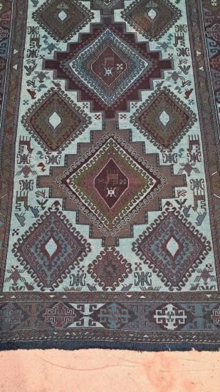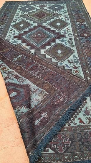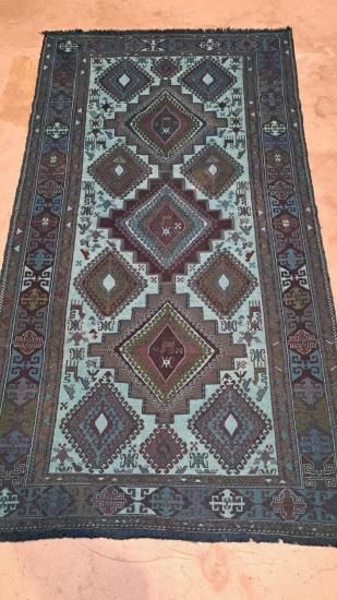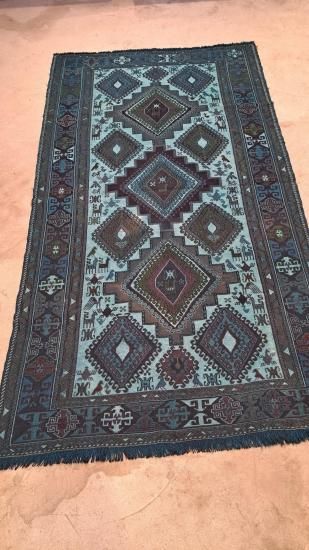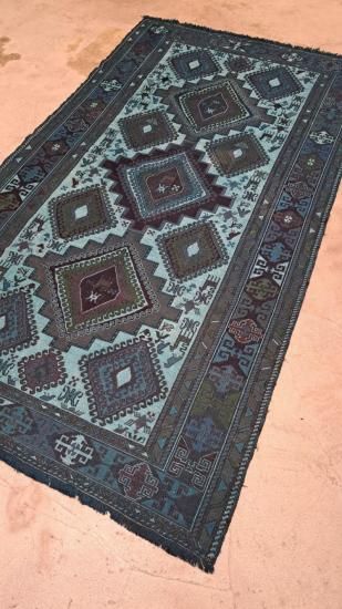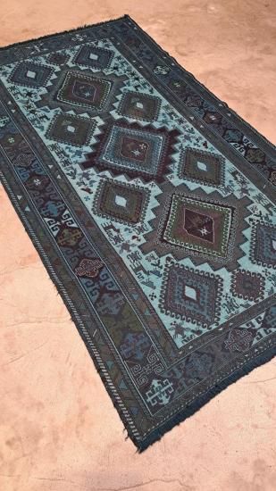 トルコ産ヴィンテージ・スーマックキリム/ブルーオーバーダイ加工/40年物/220×120cm