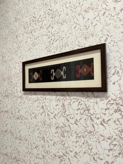 ヴィンテージ・トルコキリム フレームドウォールアート|ハンドメイド テキスタイル装飾|57×20cm